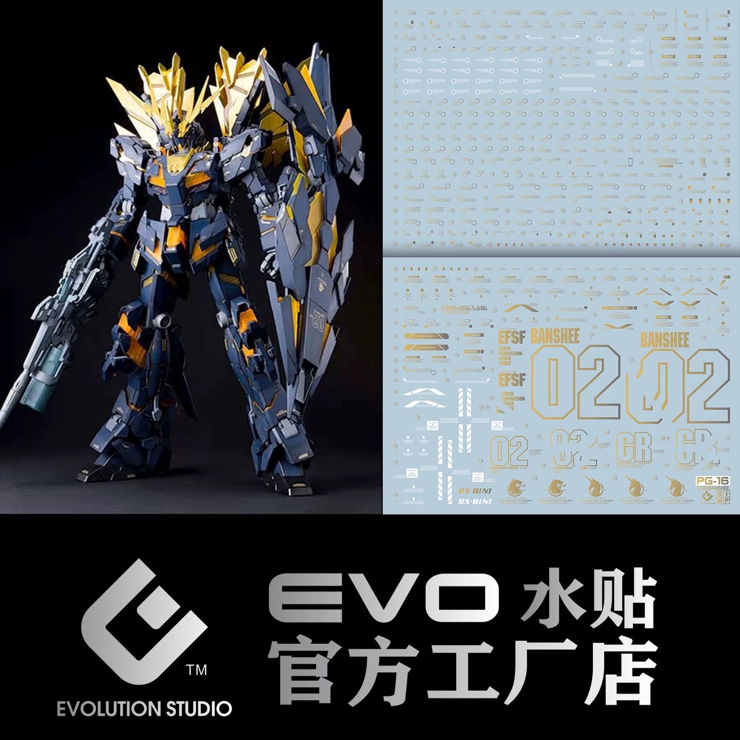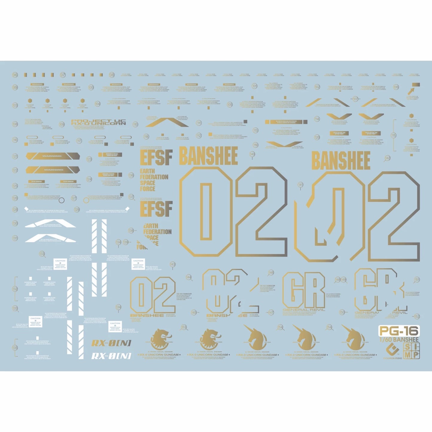 PG Unicorn Gundam 02 Banshee Norn 1/60 EVO Water Decal Plated Gold